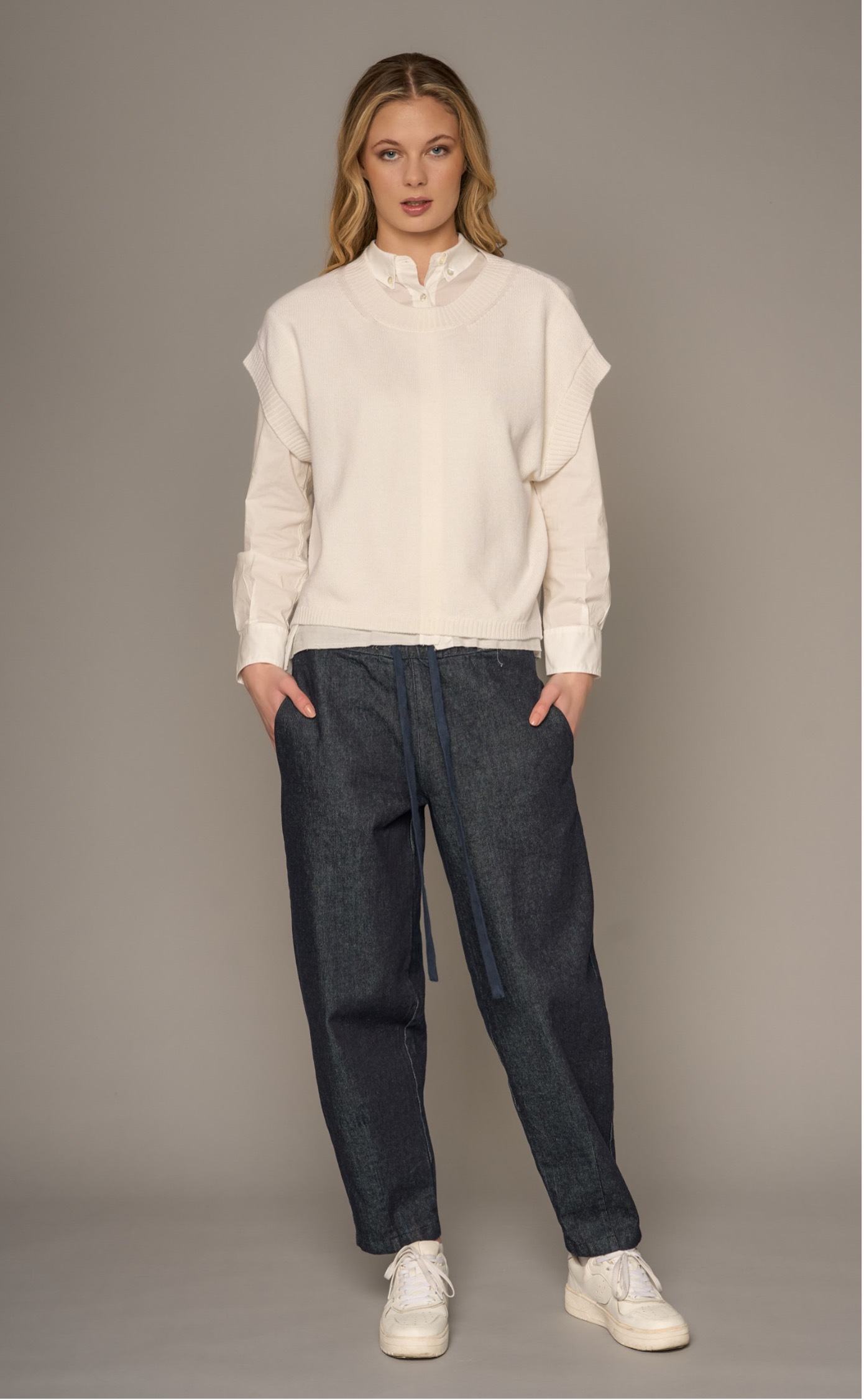 Feinster Cashmere, edle Baumwolle, recycled Denim, Seide und Leinen allesamt made in Italy. Dies sind die Eckpfeiler dieser luxuriösen, puristischen Linie.