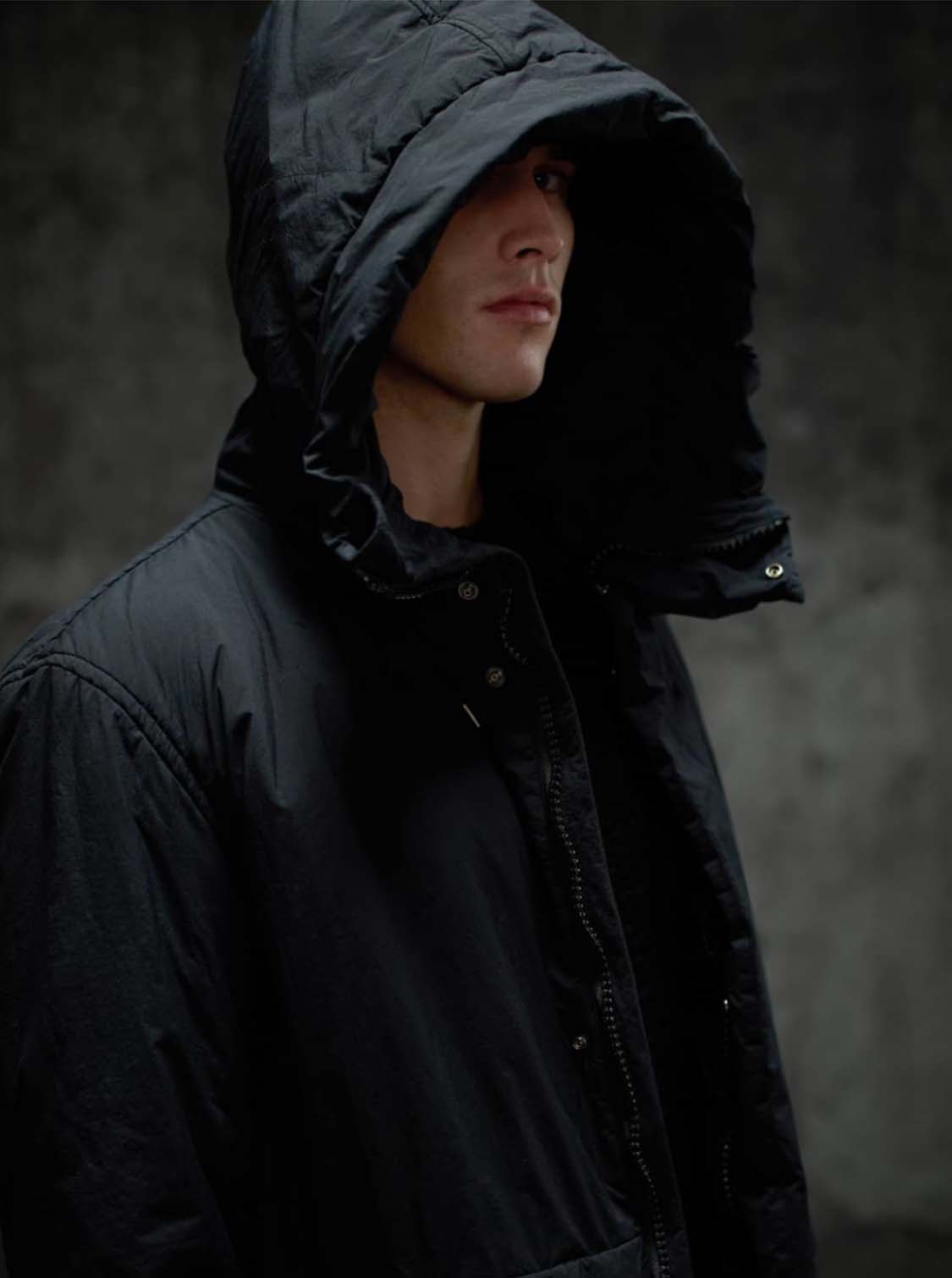 Der Markendesigner Alessandro Pungetti bezieht einen Großteil seiner Inspiration aus Uniformen und ihrer Funktionalität und baut dabei auf der Erforschung neuer hochmoderner Materialien auf. Die Militärwelt und Uniformen, die für ihre Strapazierfähigkeit und Langlebigkeit bekannt sind, sind der Ausgangspunkt für eine Kollektion, die alternative Welten erkundet und praktische, funktionale Elemente mit einer anspruchsvollen, urbanen Ästhetik kombiniert.